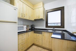 • Cuisine indépendante entièrement équipée avec vaisselle et ustensiles de cuisine, plaque de cuisson à induction, réfrigérateur, micro-ondes, cafetière électrique, grille-pain, fer et table à repasser. Il n'y a pas de four ni de machine à laver.
